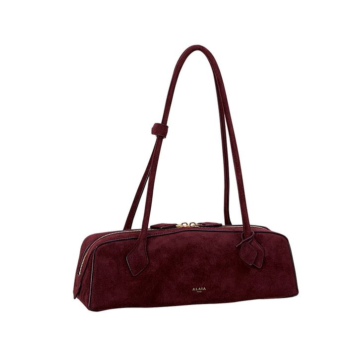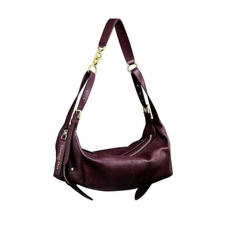 ホーボーバッグをモダンに新解釈。バーガンディとゴールドメタルの組み合わせがシック。