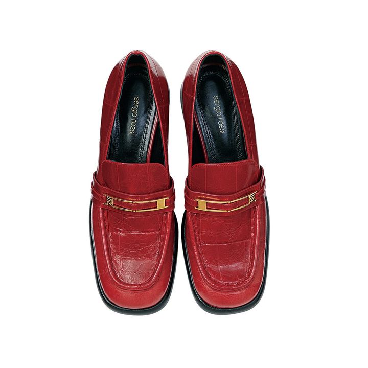 ぽってりとしたスクエアトゥとクロコの型押しが今っぽい。エッジィで存在感のある上級者風の足元に。