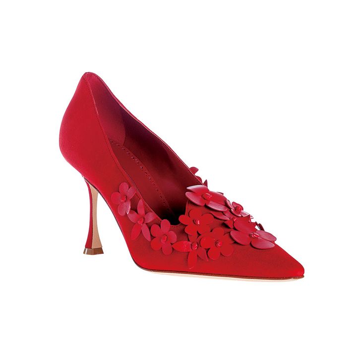 たっぷりとあしらわれた花々に乙女心がくすぐられる一足。鮮やかな色が洗練された大人のフェミニニティへと導きます。