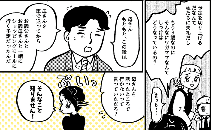 3. <ワガママ義母にウンザリ>食事会は強制お開き「ばぁばこないで!」3歳長男がキレた【まんが】