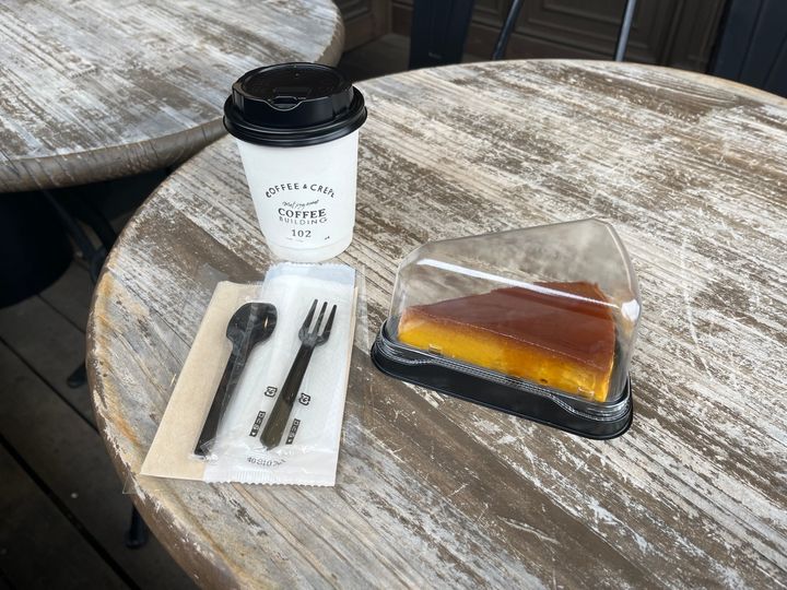 コーヒーはドライブのお供に。かぼちゃのプリンは待ちきれず、車の中で食べてしまいました笑。甘さ控えめで大人な味、でもとても濃厚で、コーヒーとの相性がよく、ブレンドとセットで頼んで大正解でした。