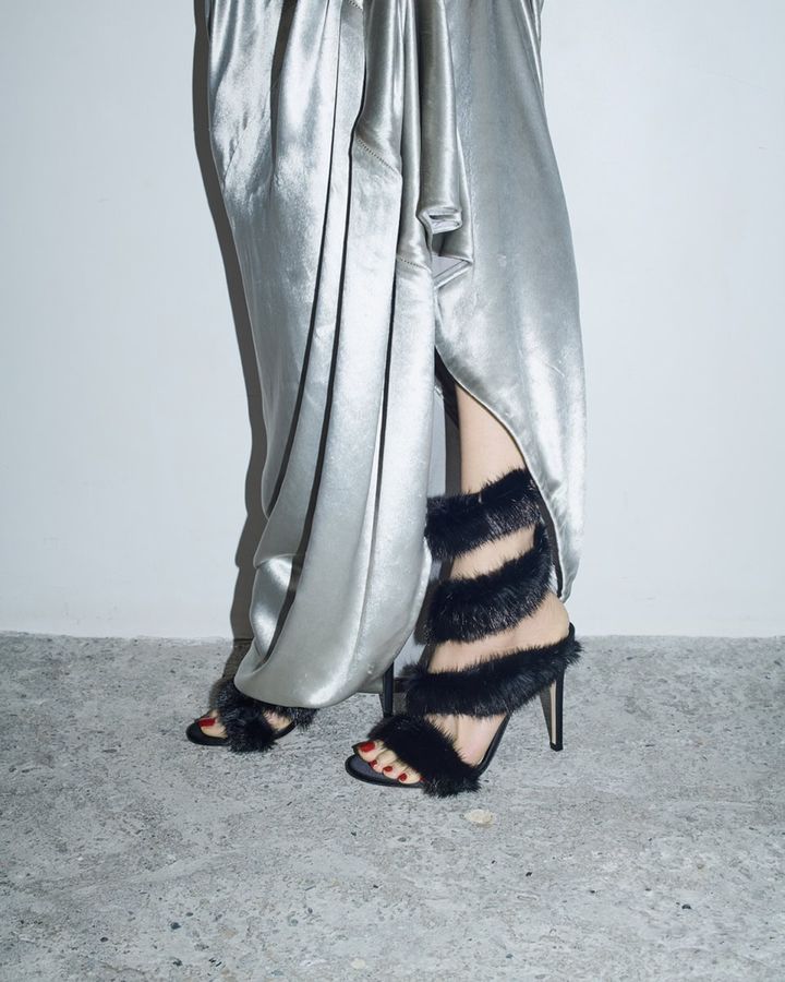シューズ[ヒール10.5㎝]¥291,500(ジャンヴィト ロッシ/ジャンヴィト ロッシ ジャパン)、ドレス¥624,800(アダム リぺス)