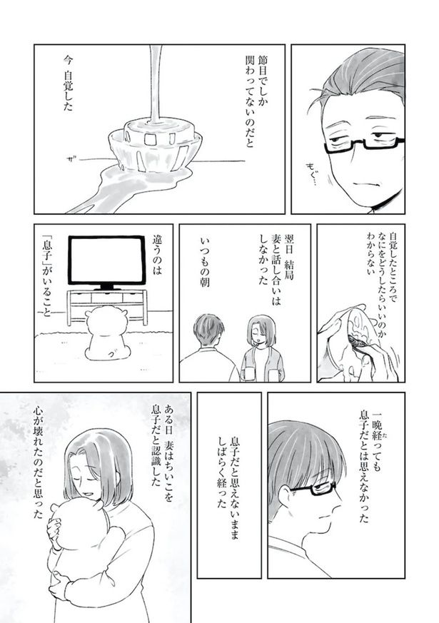 2. 謎の生き物を息子とは思えない。育児を妻に任せてきた夫が気づいた、妻との違い/人類の半数がちいこになった1⑧