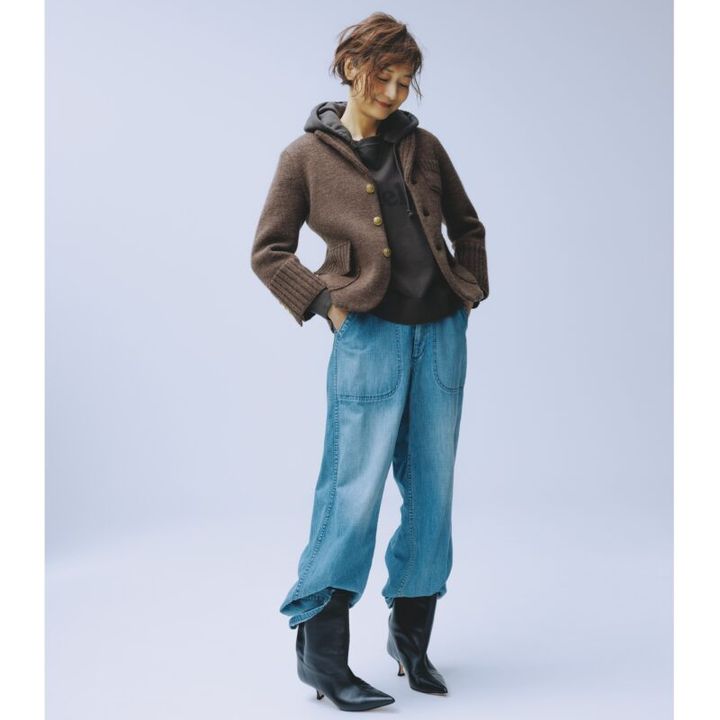 ジャケット¥264,000、フーディ¥61,600、デニム¥71,500/すべてマディソンブルー、ブーツ¥49,500/ペリーコ サニー(アマン)
