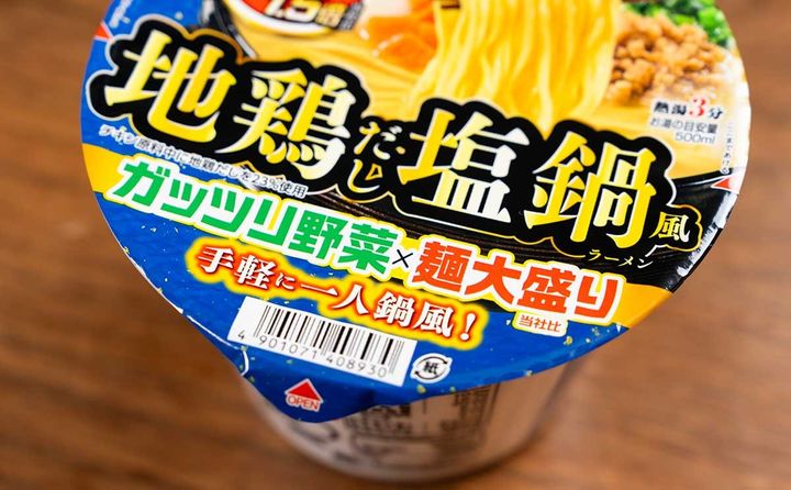 抜群の食べごたえ【地鶏だし塩鍋風】カップ麺が大盛りで大満足
