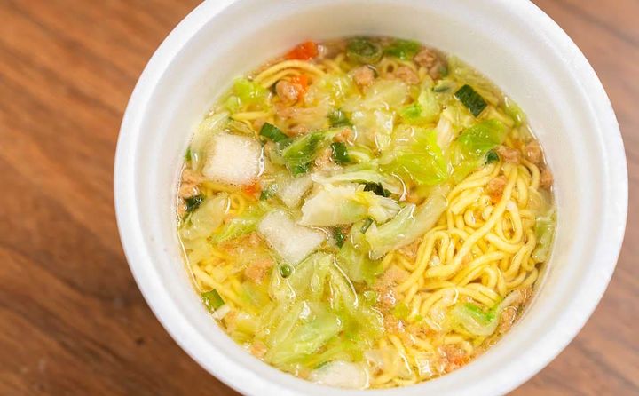 3. 抜群の食べごたえ【地鶏だし塩鍋風】カップ麺が大盛りで大満足