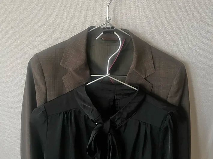 筆者は、スーツの上下を一緒に掛けたり、ジャケットとブラウスをセットにして吊るしたりして使っていますよ。