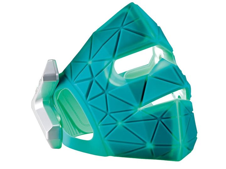 青緑×赤のW光ケア。表情筋も鍛える、進化系マスク美顔器。特許取得の青緑光がくすみにアプローチし透明感を引き出す。さらにEMSで表情筋を刺激しハリ感をアップ。