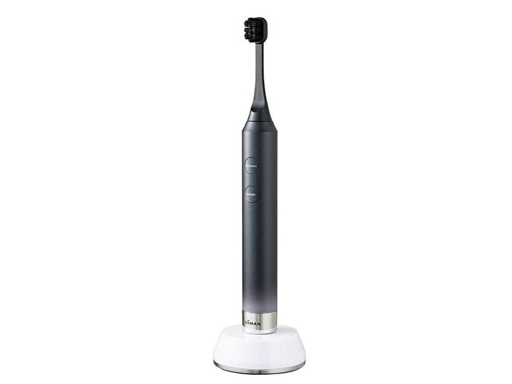 歯磨きと同時に効く!表情筋リフトケアで口元から上向きに。朝晩の歯磨きに美顔器機能を融合させた、〝ながら美容〟の最骨頂アイテム。EMSで表情筋を鍛え、超高速振動で歯石除去。