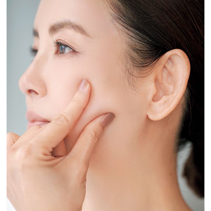 皮膚に厚みがありパンと張っています。加齢とともに骨が萎縮して靭帯が伸びると、分厚い皮膚が下がり、顔が四角い形になりがち。目立つのは、ほうれい線です。ボリュームがあり重たい皮膚を引き締め、表情筋を鍛えるケアをしましょう。