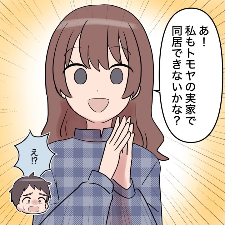 そして、思いついたように「あ!私もトモヤの実家で同居できないかな?」と提案。もちろんトモヤは「え!?」ととても驚いていました。