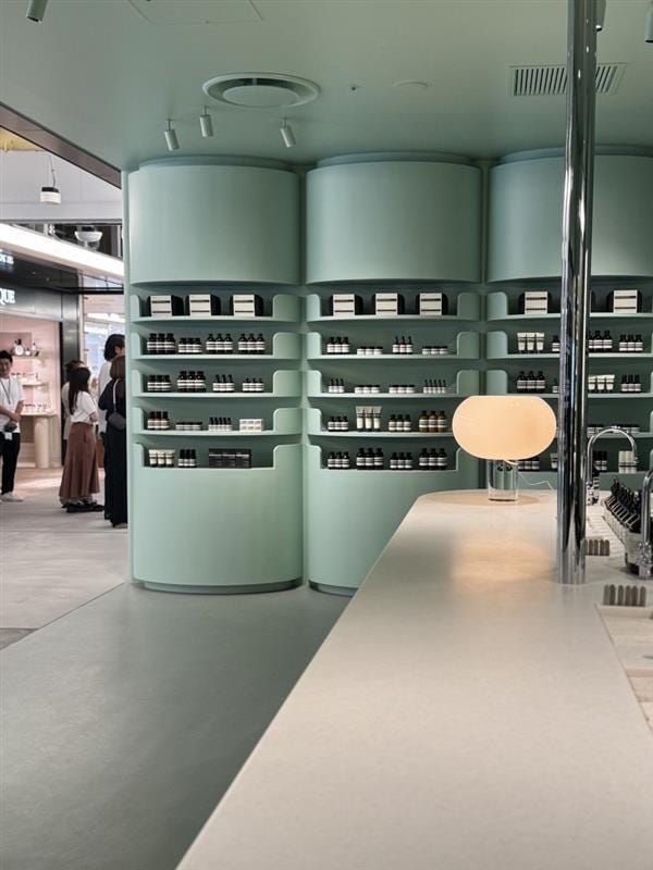 <写真>イソップ南青山」など、ブランドの象徴的な店舗のデザインを手掛けたトラフ建築設計事務所がニュウマン高輪店も担当。建築家・村野藤吾による「グランドプリンスホテル新高輪」に着想を得たアイコニックなデザインは必見。