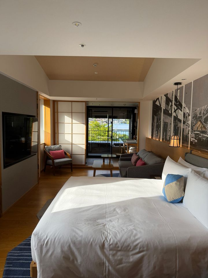 「そして今回宿泊したのが『ホテルインディゴ箱根』。数多くある箱根の旅館・ホテルの中で選んだ理由は、圧巻のリバービューと、地域密着型デザインをかかげる、客室デザイン。カラフルな寄木細工のミニバーや、毬のようなクッションなど、和と洋がミックスされた遊び心のあるデザインがとても可愛く、私の好みにドンピシャでした。今回残念ながら定休日で訪れることができなかった、『茶石』など、まだまだ箱根にはデザインスポットがたくさん。常に新しい魅力を発見できる箱根に、これからも目が離せません」