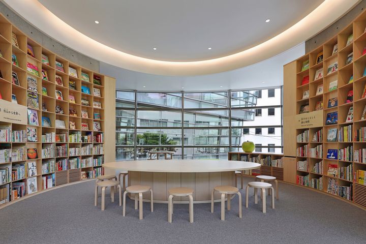 <写真>2025年の夏にオープンしたばかりの「こども本の森 松山」は安藤忠雄が設計した「坂の上の雲ミュージアム」内にある。館内では「こども本の森 松山」以外に司馬遼太郎の歴史小説『坂の上の雲』にちなんだ展示スペースもあり、合わせて楽しめる。