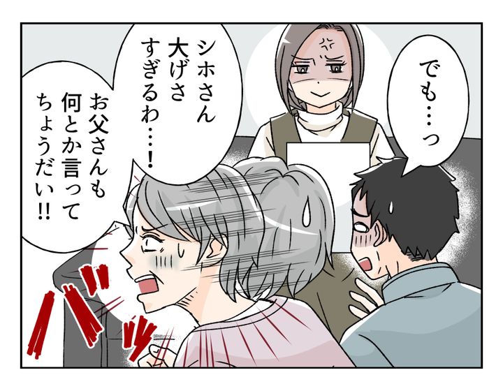 今回の主人公はアラフォーのシホさん。シホさんの義姉・アリサさんはお金にだらしがない人で、姪のリリちゃんの学費まで使ってしまったそうです。リリちゃんから相談をされたシホさんの夫・アラタさんはリリちゃんを援助したいとシホさんに話をもちかけましたが、シホさんは断りました。しかし諦めきれない様子のアラタさん。対するシホさんは、解決のためお義父さんと協力してひと芝居打つようです。