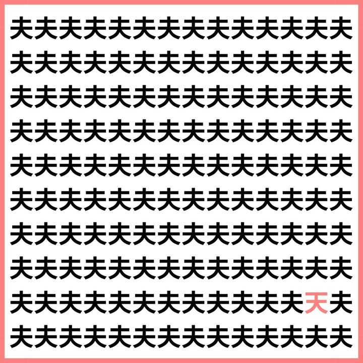 たくさんの「夫」の中に、1文字だけ違う漢字が混ざっています。