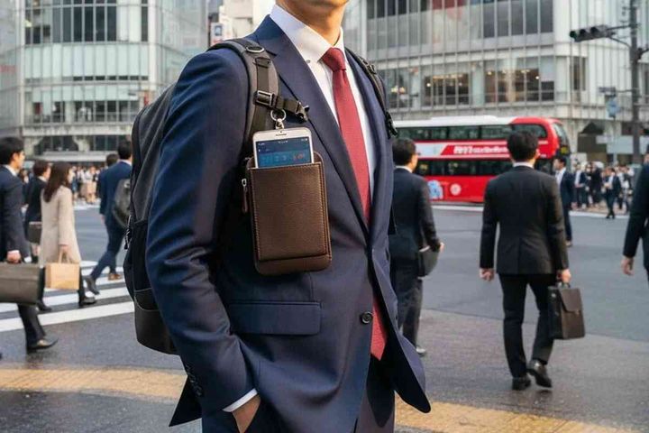 ビジネスリュックは通勤に便利ですが、改札を通る際にスマホやICカードを取り出すためにリュックを下ろす動作がストレスになることがあります。そこでおすすめなのが、リュックのショルダーベルトなどに外付けできる「スマホポーチ」です。
