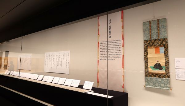 展示室4、右、藤原定家画像 1幅 土佐光芳 江戸時代・18世紀、左、国宝 熊野御幸記 1巻 藤原定家 鎌倉時代・建仁元年(1201) すべて北三井家旧蔵 三井記念美術館蔵[/caption]
