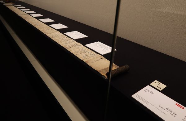 三井記念美術館では初公開となる《大嘗会巻》。 藤原道長(ふじわらのみちなが)の時代に藤原実資が残した日記『小右記』にある長和元年(1012)の大嘗会の記録を藤原定家が筆写したものだそうです。