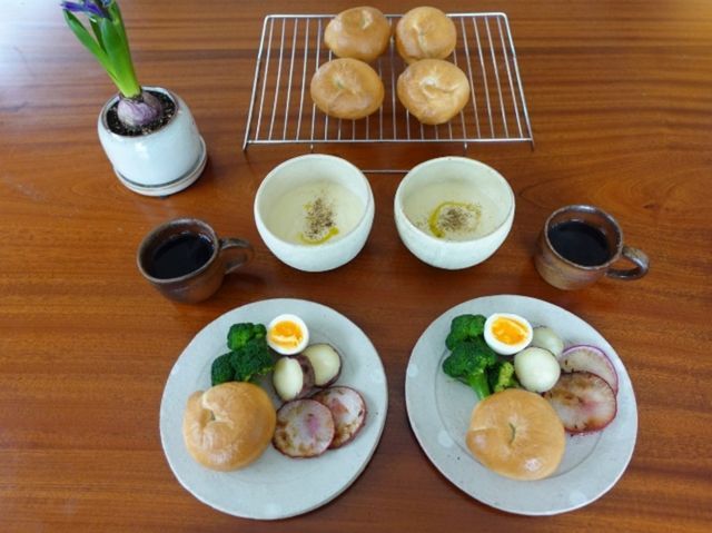 自分の好きな味付けで、野菜もたっぷり。無農薬の玄米も入れて、ほっとする味わいに。短時間でもリラックスできて、午後に向けてエネルギーをチャージできます。