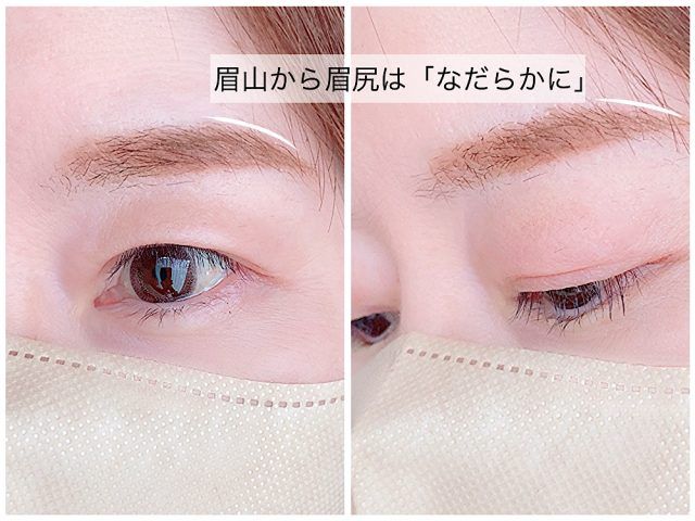 眉山は角度をつけず、少し丸めるように意識すると、やわらかく女性らしい雰囲気に仕上がります。