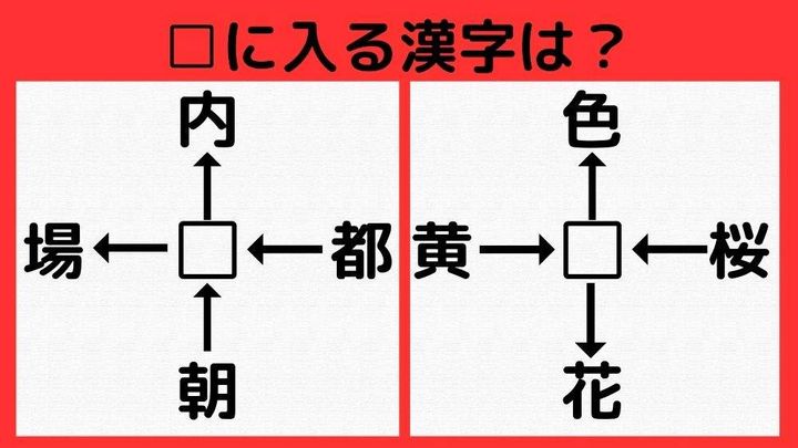 【漢字パズル】□に入る漢字が思い付きますか? □内、都□、朝□、□場・・・!?