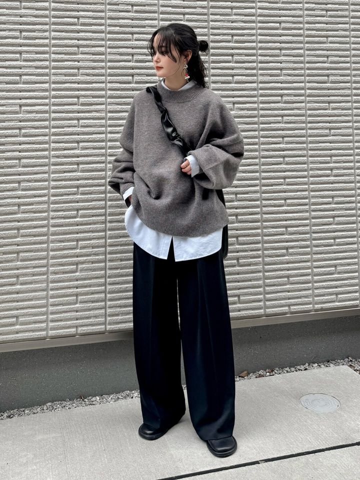 2. ゆったりニットにシャツをレイヤードして奥行きを