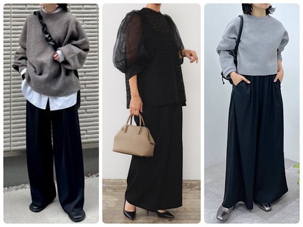 3. 50代の大人おしゃれ!黒ワイドパンツの着まわしコーデ4選