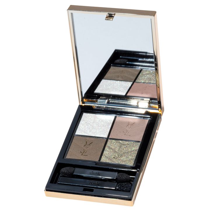 サテンのように輝くフレッシュオリーブと、スモーキーな目元を演出するディープカーキの合わせが、透明感と深みを与える。イヴ・サンローラン クチュール ミニ クラッチ 830 ¥10,890()