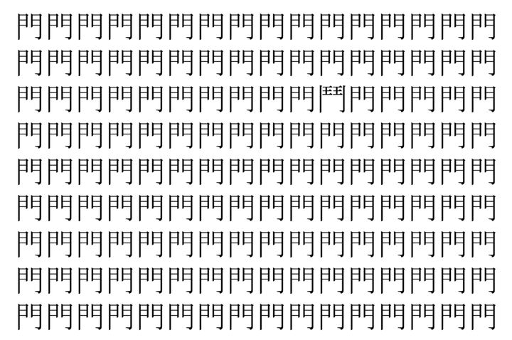 【脳トレ】「門」の中に紛れて1つ違う文字がある!?あなたは何秒で探し出せるかな??【違う文字を探せ!】