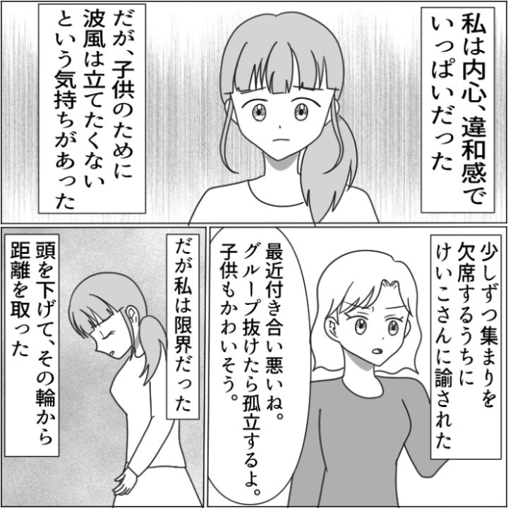 衝撃のエピソードを漫画化!今回は自分の言うことに少しでも反対する人をグループから孤立させるママ友のお話をご紹介します。