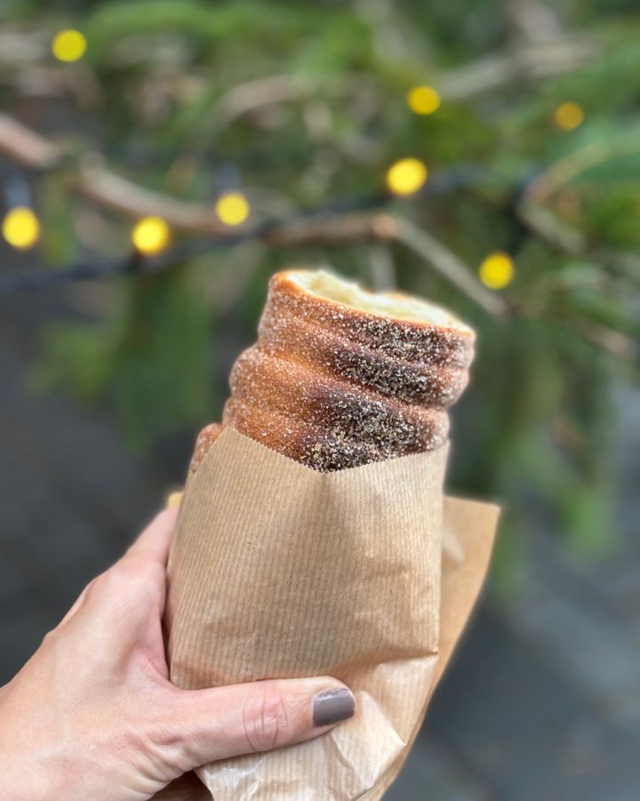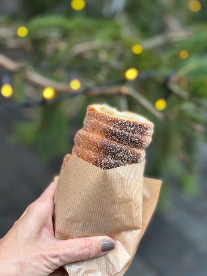 私のイチオシはハンガリーの伝統菓子「クルトシュ・カラーチ」(約750円)。細長い筒状で外はカリッと香ばしく、中はふわっと柔らかい甘い生地。屋台で焼きたてを食べるとこれがまた絶品で! 思い返すだけでまたすぐに食べたくなる。不思議なスイーツなんです。