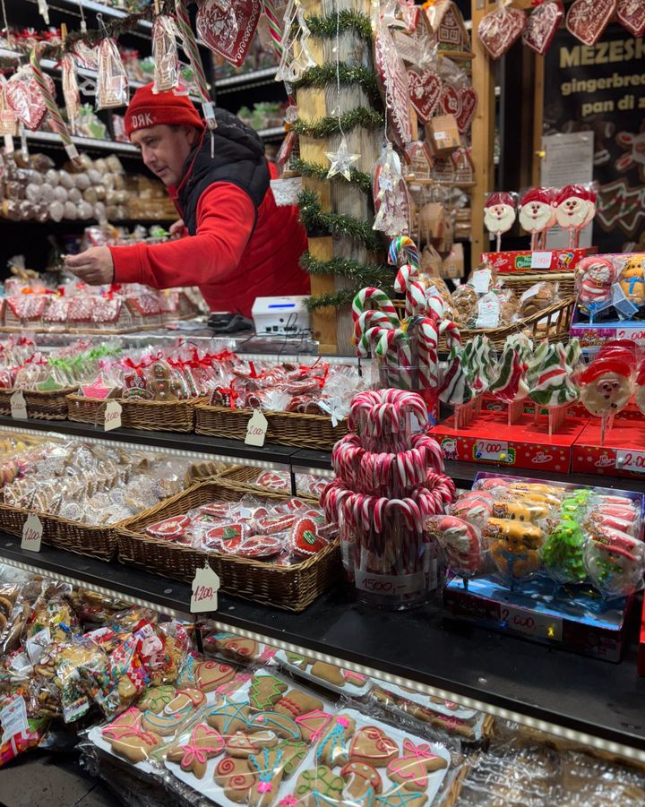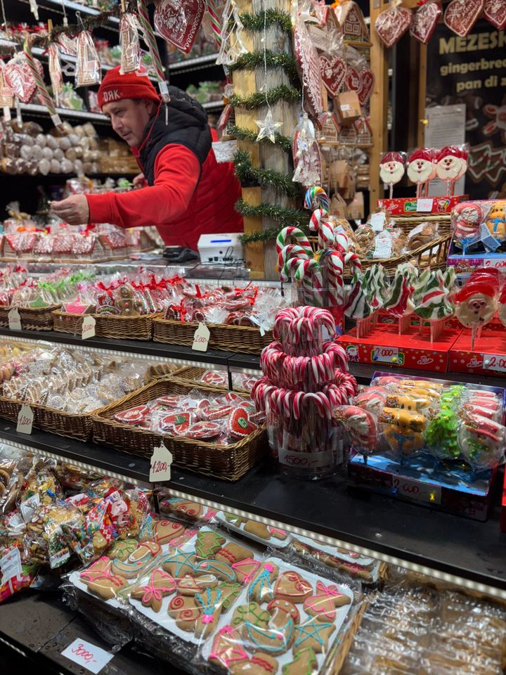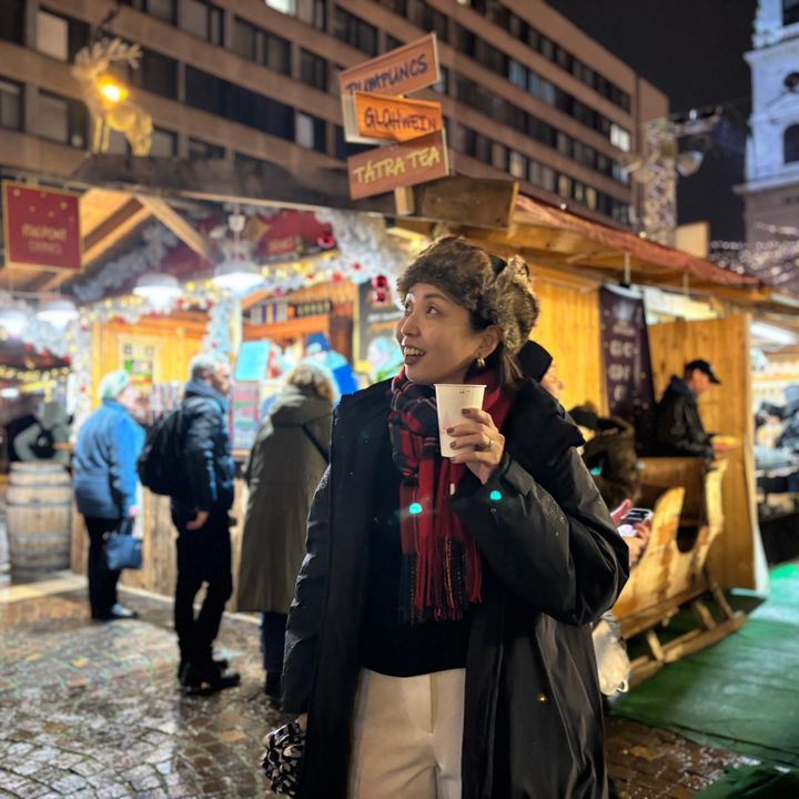 ホットワインを片手に歩いていると、屋台から甘い香りがふわりと漂ってきて、なんだか幸せな気持ちに。やさしい灯りとほどよい賑わいに包まれたブダペストのクリスマスマーケットで過ごす時間は、気持ちまでゆっくりほどけていくような忘れられないひとときでした。