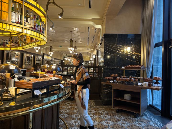 19世紀に建てられたパサージュ(屋内通路)をそのまま使っていて、天井は高く、装飾がとにかく豪華。カフェというより、もはや小さな宮殿や美術館に迷い込んだといった方が正しいのかも。