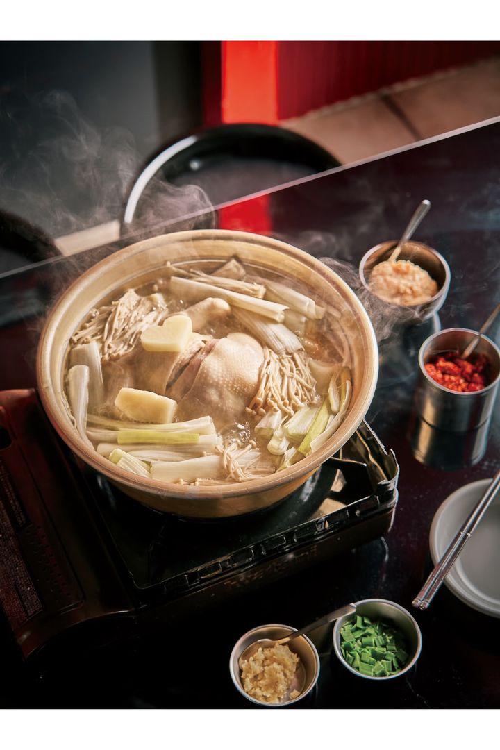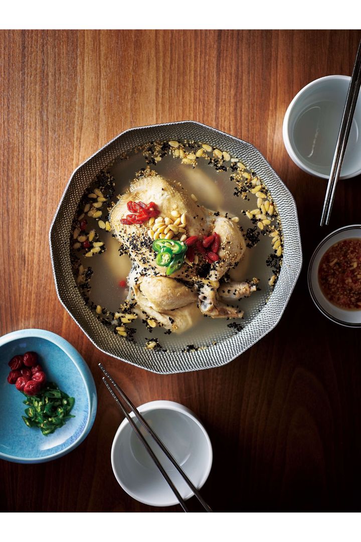 鶏がらと野菜を長時間じっくり煮込んだクリアな味わいが魅力の参鶏湯。クコの実や松の実、刻んだ青唐辛子などを加えて彩りよく仕上げよう。作業工程は少ないが、スープを煮詰めるのに少し時間がかかるので、おうちでゆっくりと過ごす休日にトライするのがおすすめ。
