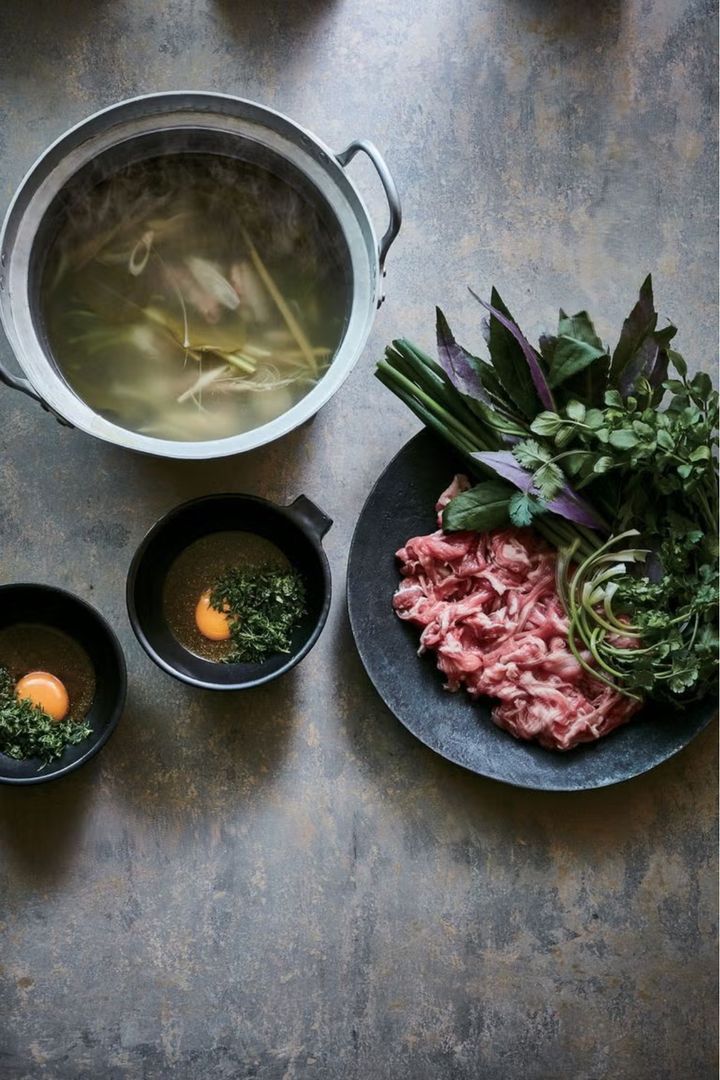 クセのあるラム肉には、清涼感のあるハーブやエスニック系の調味料を合わせるのが◎。ナンプラーに漬け込んだラム肉を、レモングラス香るスープでさっと湯がいたら、スパイシーなマサラ風たれにつけてどうぞ。卵黄をほぐしてマイルドに食べても美味。