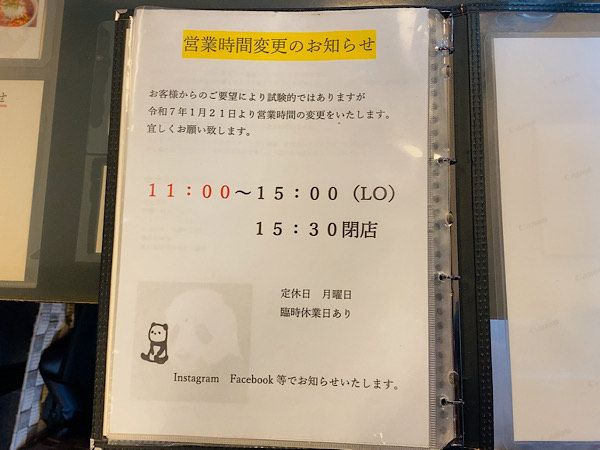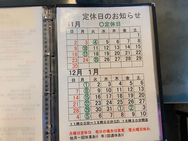 メニューはこちら!