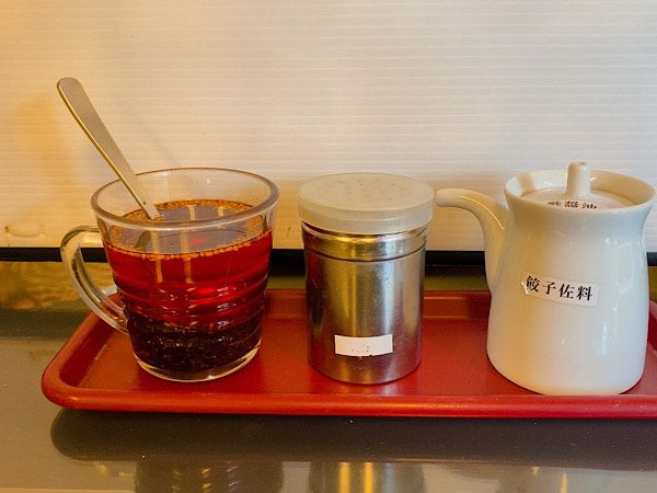 卓上の調味料で辛さの調整ができるようになっています。