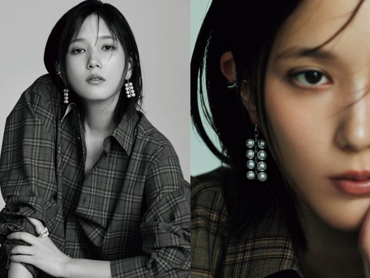 チェーンに配されたバゲットカット ダイヤモンドの透明感が、パールにクールで端正な輝きを添える。イヤリング〈シークエンス〉[WG×あこや真珠×DIA]¥2,860,000、イヤーカフ〈デインジャー ホーン プラス〉[WG×あこや真珠×DIA]¥391,600、左手リング〈シークエンス〉[WG×あこや真珠×DIA]¥1,320,000、右手リング上〈デインジャー ホーン プラス〉[WG]¥475,200、右手リング下〈デインジャー ホーン プラス〉[WG×DIA]¥712,800(全てTASAKI)、シャツ¥140,800(コート/メゾン・ディセット)、デニムパンツ¥25,300(アモーメント)