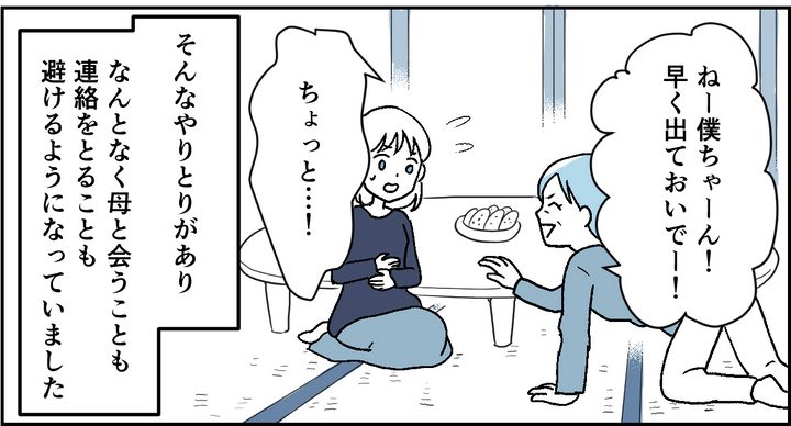 実は以前、妊娠の報告をしたときのこと……。母に妊娠したことを伝えると、思いがけない言葉が返ってきました。私には戸惑いと違和感が残るやりとりでした。その言葉を聞いてから、なんとなく母と連絡を取ることも、会うことも避けるようになってしまいました。