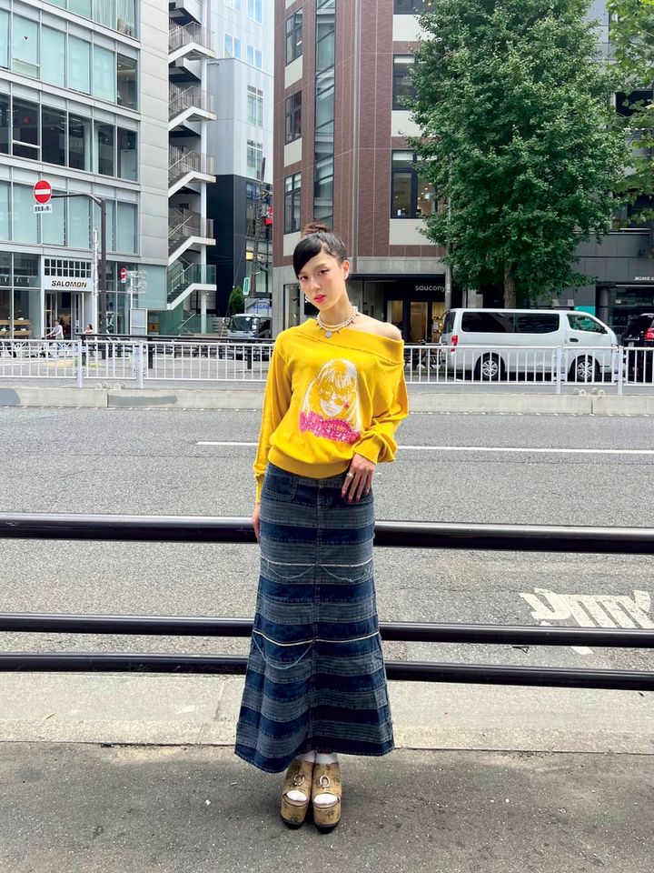 ニット¥33,000、スカート ¥48,400、ネックレス¥26,400、シューズ¥39,600/以上すべてヒステリックグラマー、その他/すべて本人私物