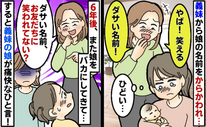 産後に情緒不安定になった私。夫婦で一生懸命考えた娘の名前を義妹にからかわれ、ショックを受けました。数年後、義妹からまたもや嫌な言葉をかけられて……?