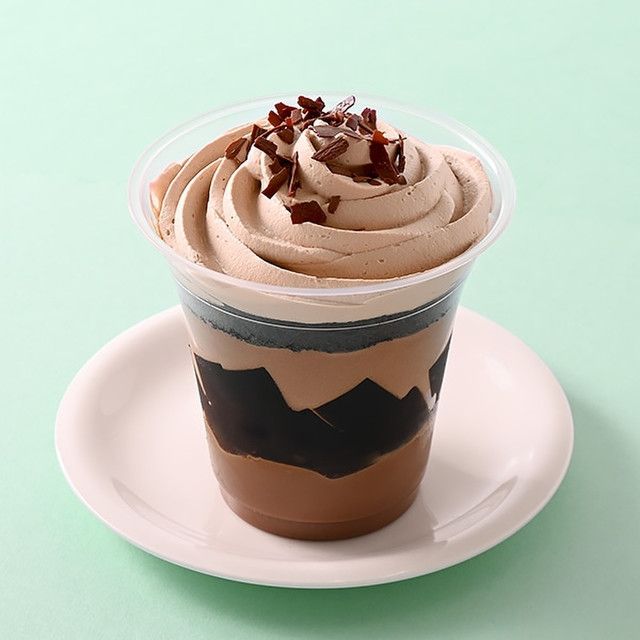 ミルクチョコプリンにコーヒーゼリーとチョコムース・ココアスポンジを重ね、チョコホイップなどで飾ったボリューム満点のパフェです。
