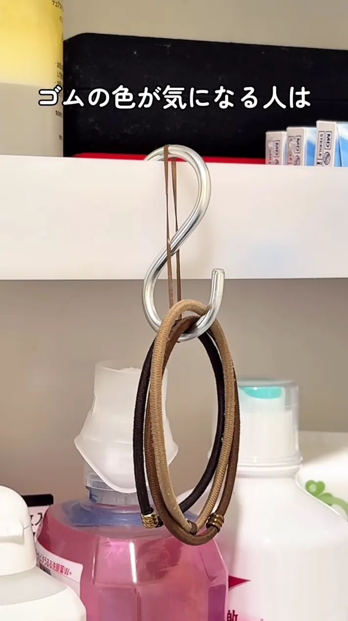 洗面台でもS字フックが落ちない! ヘアゴムの固定方法