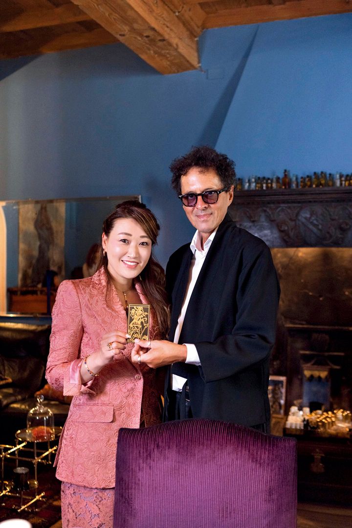 「香りは気持ちを変え、空間の気を変え、人生を変える」。そんな信念で世界の五ツ星ホテルの香りの空間演出やハイブランドの香水を手掛けてきたシレノ・ケローニ氏(右)とともに。 撮影=セドリック・ディラドリアン
