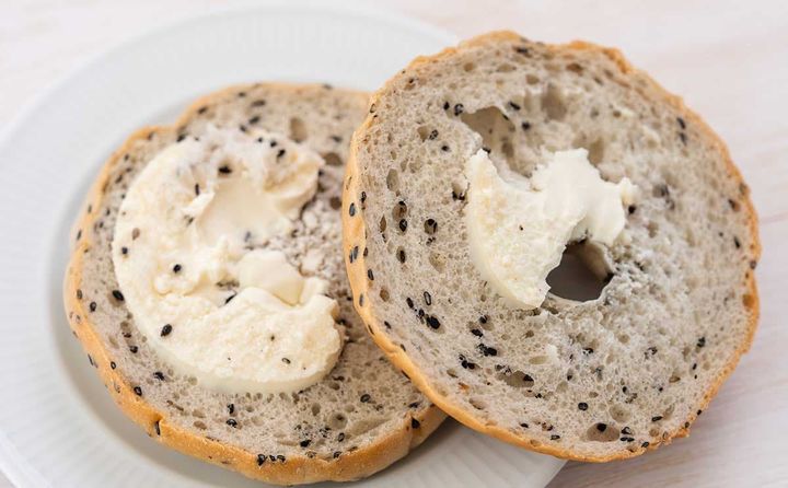 せっかく半分にカットしたので、残りをトースターでリベイクしてみたところ、ベーグルの表面がさっくりとした食感に変化し、香ばしさもアップ。この食べ方もアリだと思いますが、クリームが熱くなったのでヤケドには注意が必要ですね。