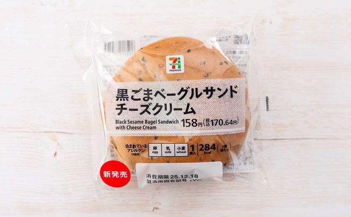 セブン-イレブンは2025年12月16日(火)に、「セブンプレミアム 黒ごまベーグルサンド チーズクリーム」(税込170.64円)を発売しました。