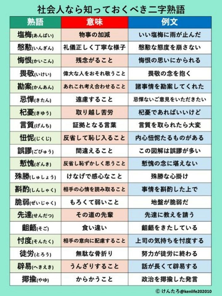 教養になる知識やクイズを毎朝図解で紹介してくれている、けんたろ| 知識図解さんの役立つ二字熟語の投稿が話題です。投稿はこちら。