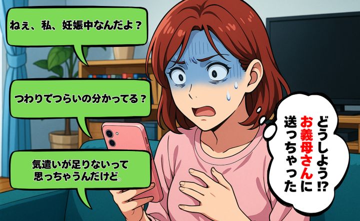 妊娠中のある日、寝不足でぼんやりしながらスマホを触っているとき、とんでもない誤爆LINEをしてしまいました。夫への愚痴をこぼしたメッセージを作成していたのですが、送信ボタンを押した瞬間、宛先が夫ではなく義母になっていることに気づいたのです。