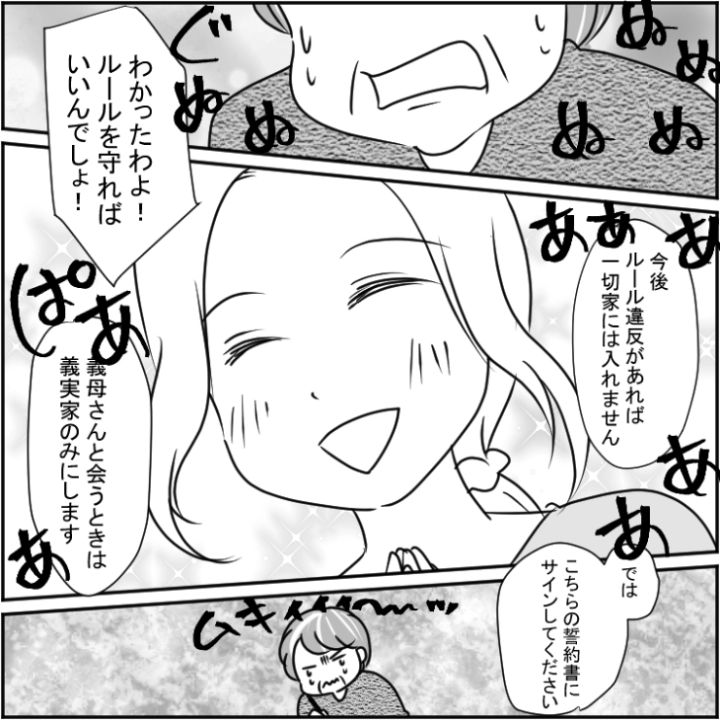 頼りにならない夫には頼らず自力で義母を追い払うことに成功した主人公。ようやく平和が戻ったのでした。
